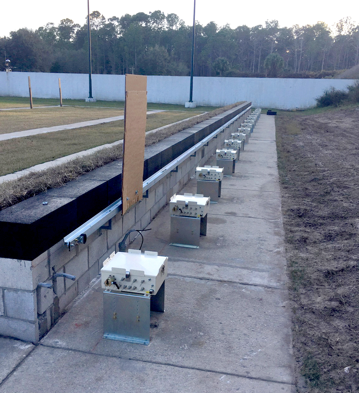 For permanent range installations, the track can be secured to a concrete pad, mounted to a ballistic wall, or suspended from the ceiling at the target line.