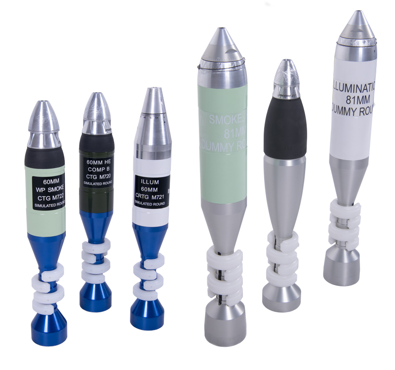 Each mortar includes one (1) each of High Explosive (HE), White/Red Phosphorous Smoke (WP) and Illumination (ILLUM) simulated rounds, and uses customer bipods and sights.